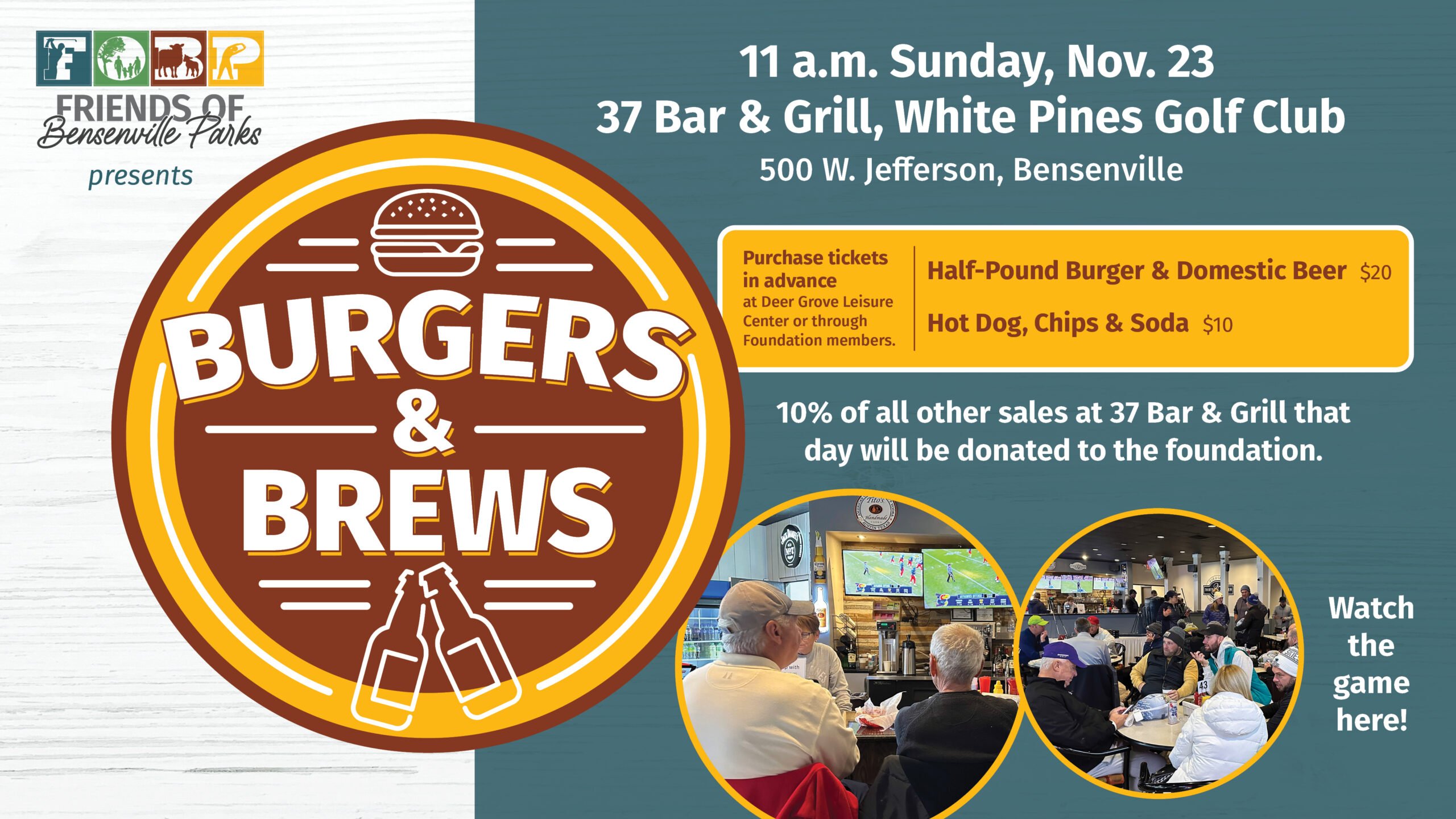 Tickets are on sale now for the White Pines Golf Club’s Burgers & Brews Fundraiser benefiting the Friends of Bensenville Parks Foundation beginning at 11 a.m. Sunday, Nov. 23, at 37 Bar & Grill, 500 W. Jefferson St., Bensenville.